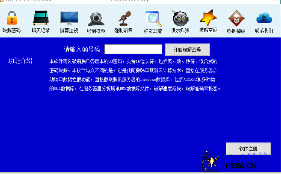 等强大工具。输入密码即可破解任何qq密码。 软件300元注册 注册联系客服即可最好用电脑下载手机可能有的无法下载